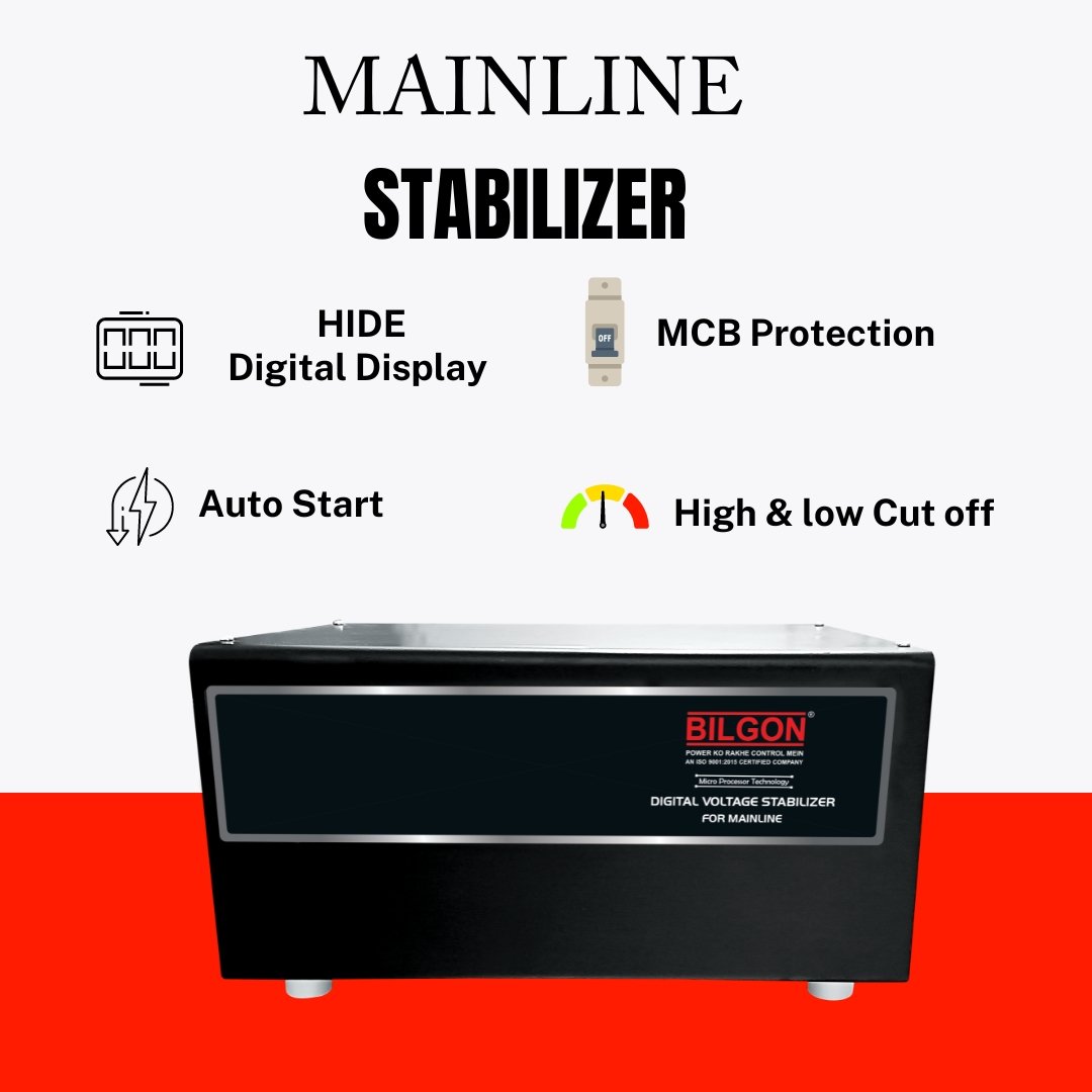 BILGON Mainline Stabilizer (HEAVY SERIES) offers a variety of options in this segment also. Our mainline stabilizers are smartly technically designed for both home & office environment having different loads. Our HEAVY SERIES starts from 5 KVA load to 15 KVA load adequate for all home appliances including 1 Air conditioner.